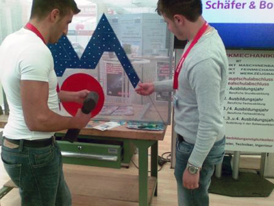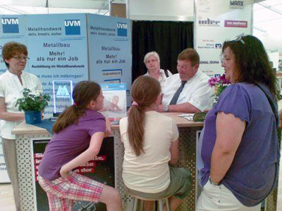 Der Stand wurde am Wochenende auch gut von den Besucherinnen und Besuchern des Maimarkts angenommen, aber der große Andrang an Schülergruppen kam erst an den Wochentagen. Die Schüler hatten die Möglichkeit, sich umfassend über Metallberufe und die Ausbildungsmöglichkeiten im Metallhandwerk zu informieren. Leider war das Interesse insgesamt eher gering, nur bei zwei oder drei Klassen war eine gute Vorbereitung durch die Lehrer an den gezielten Fragen der Schüler zu bemerken. Besonders häufig hörten die Mitarbeiter am Innungsstand von den Jugendlichen den Wunsch, Mechatroniker werden zu wollen. Auch die »Standnachbarn«, die Agentur für Arbeit, die Jobbörse, die Handwerkskammer und die Bildungsakademie (BiA), beklagten geringe oder nicht vorhandene Interesse der Jugendlichen. Nur die ausgelegten Streuartikel waren gefragt.