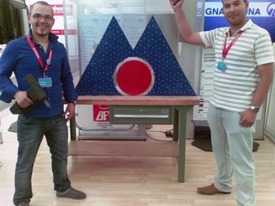 Das Projekt »Metall-Emblem« fand weniger Beachtung als erwartet, nur wenn jemand daran arbeitete, blieben manche Besucher stehen und schauten bei der Arbeit zu. Die Messerbesucher stellen vereinzelt Fragen, was das Objekt darstellen soll oder erzählten, dass sie selbst auch in einem Metallberuf tätig seien oder waren. Ab und zu nieteten Besucher blaue Dreiecke auf die Blechwand, wobei die Akku-Nietzange große Beachtung fand.